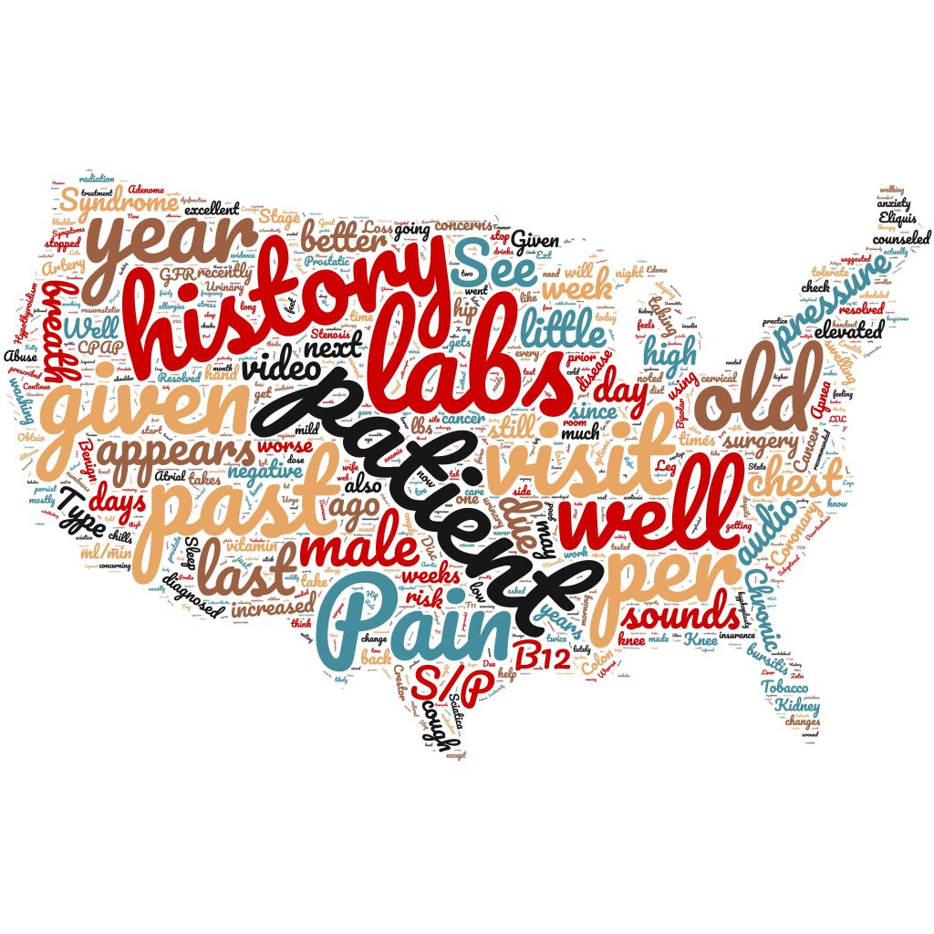 Here’s a word cloud look at my last week, which was entirely telephone or virtual (video) visits given the COVID-19 pandemic. I took a compilation of all my notes, minus names and protected information of course. Many words did not fit, and I had to adjust the relative size of some words to include the most relevant ones.